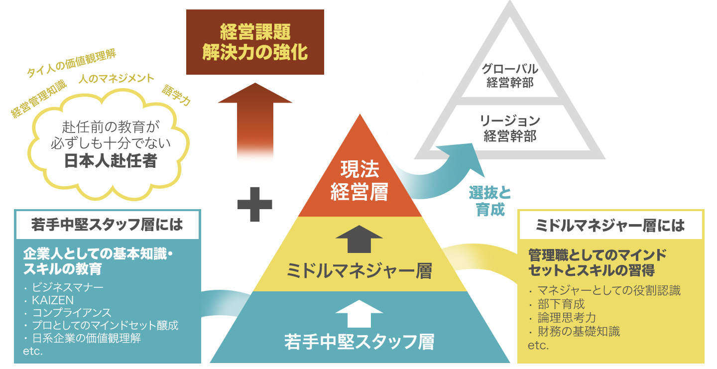 サイコム・ブレインズUBCLでは、上記のような課題を解決するために、様々な人材育成プログラムや組織力強化のためのコンサルティングの提供を通じて、在タイ日系企業の持続的成長を支援します。